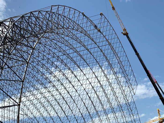(2)网架加工前应对现场尺寸进行复测,确认无误后方可进行加工、安装;网架制作、运输、安装应遵守《空间网格结构技术规程》JGJ7-2010、《钢网架新沂螺栓球节点》JG/T 10-2009、《钢网架新沂螺栓球节点用高强度螺栓》 GB/T 16939-2016、《新沂钢结构新沂工程新沂施工规范》 GB50755-2012、《新沂钢结构新沂工程施工质量验收标准》 GB50205-2020。